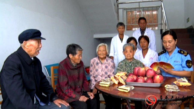 阳光养老院院长侯巧云:非常感谢药监局的同志们来慰问这些空巢老人,老人们也很高兴,也很激动,希望以后社会各界多关心这些空巢老人。